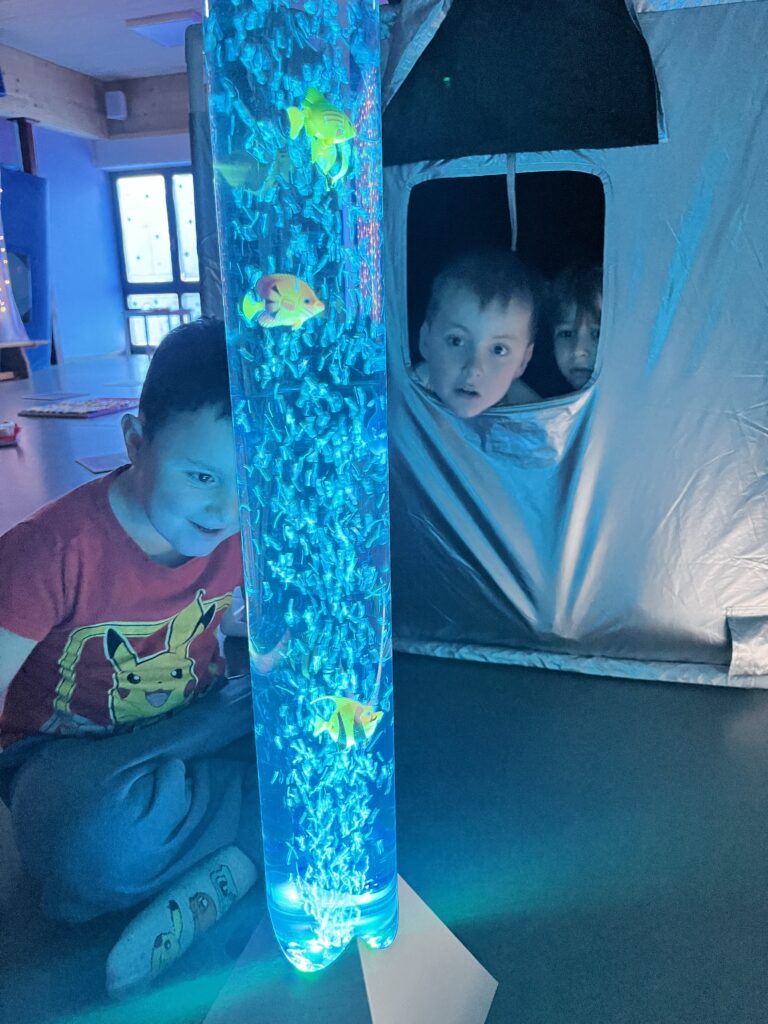 In der Fastenzeit und passend zu unserem Jahresthema, wollten wir auch bei uns im Kinderhaus einen Ort zum Entspannen schaffen. So bauten wir unsere Turnhalle um zu einem wunderschönen Snoezelen-Raum. Inspirieren ließen wir uns von den Entspannungsräumlichkeiten im Kloster Reichenbach. Hier wurde eine tolle Snoezelen-Landschaft für die Bewohner geschaffen. Wir durften uns diese Räumlichkeiten gemeinsam anschauen.
